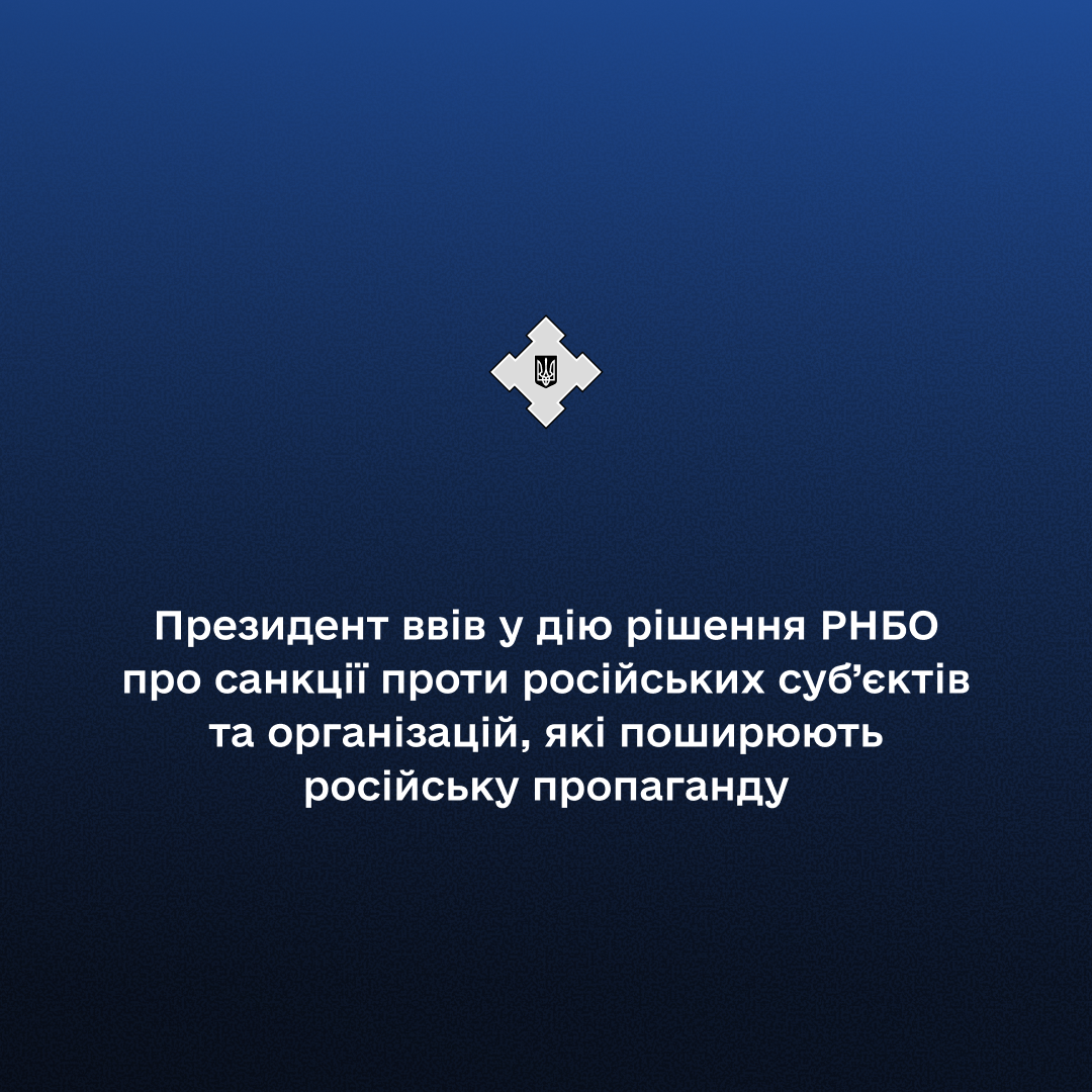 Президент ввів у дію рішення РНБО про санкції проти російських суб’єктів та організацій, які поширюють російську пропаганду