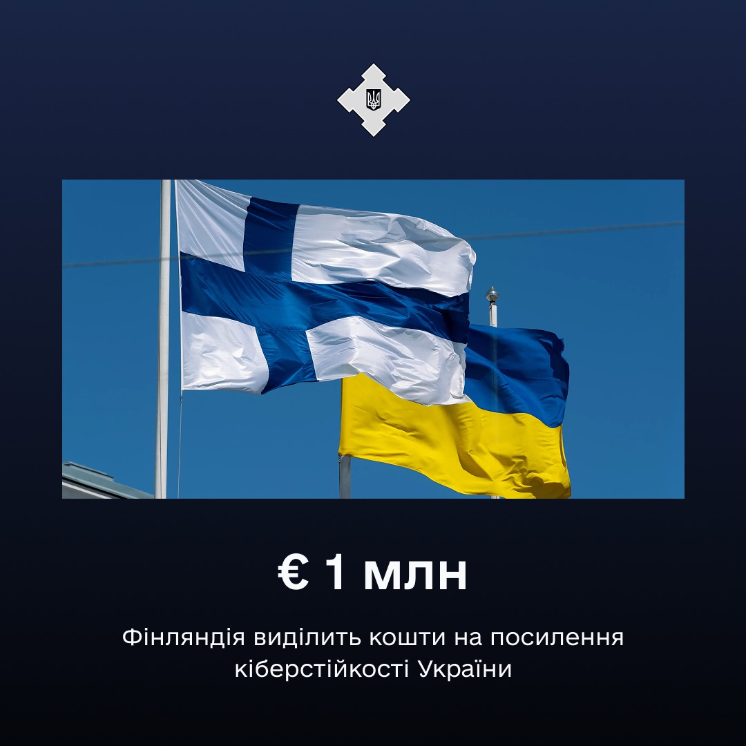 Фінляндія спрямує 1 млн євро на підтримку проєктів із посилення кіберстійкості України. Фінансування буде реалізовано до кінця 2026 року та спрямоване, зокрема, на захист цивільної та критичної інфраструктури, а також розвиток спроможностей у сфері кібербезпеки.