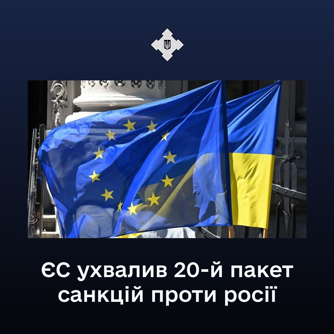 20-й пакет санкцій став найбільшим за останні два роки — він спрямований на обмеження ключових секторів російської економіки, зокрема енергетики, ОПК та фінансової сфери.