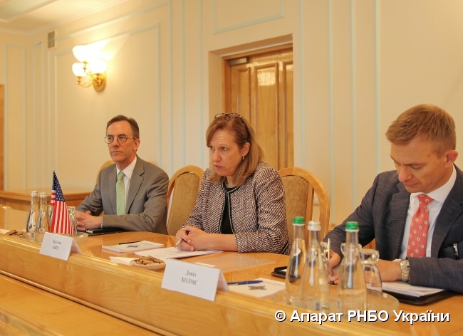 Секретар РНБО України О. Данилюк провів зустріч з тимчасово повіреним у справах США в Україні К. Квін Версія для друку